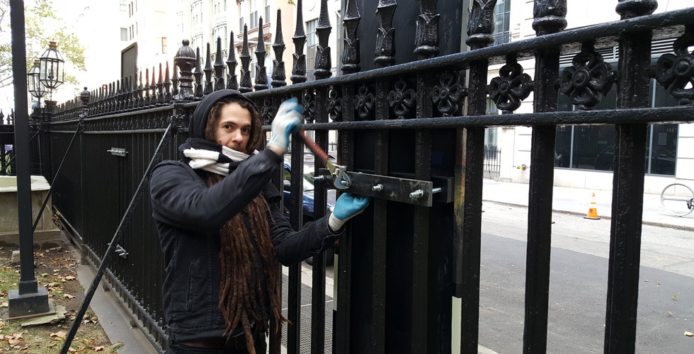 We produced 45 sintra panels for the iron gate that surrounds St. Paul's Chapel near the World Trade Center. They're 24"W x96"H and wrapped with self adhesive vinyl. Graffiti artists, take note, these are protected with anti-graffiti lamination. The tricky part of this job was securing the boards to the gate. We had to fabricate custom brackets made of PVC and wire to ensure they'll stay put. Take a look at the photos and tell us what you think!